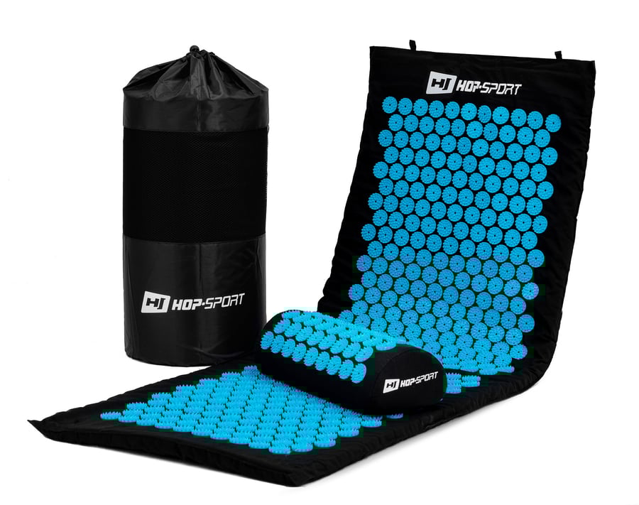 Acupressuurset XL, Hop-Sport, grote acupressuurmat met kussen, 429 massagerosetten, gratis levering, Gratis: transporttas, Blauw