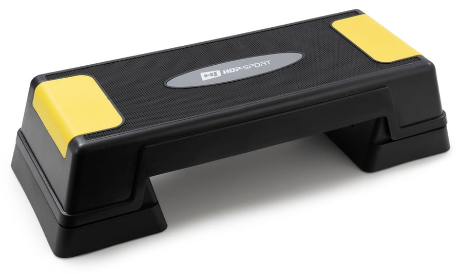 Aerobic Stepbank, Hop-Sport, 2 Niveaus verstelbaar, stabiel en duurzaam, antislip oppervlak, gratis levering, Zwart/Geel
