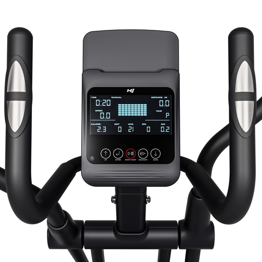 De HS-5100C Floud magnetische crosstrainer is de ideale keuze voor iedereen die comfortabel, slim en zonder verveling wil trainen. De ingebouwde computer met Bluetooth toont alle belangrijke trainingsparameters en dankzij de Kinomap-app train je op virtuele routes van over de hele wereld. De elliptische beweging activeert je hele lichaam – je benen, billen, armen en buikspieren – terwijl je gewrichten worden ontlast. Het elektronische weerstandssysteem met 32 niveaus en 20 voorgeprogrammeerde trainingsprogramma’s maakt het mogelijk om elke training perfect af te stemmen op jouw doelen, van lichte cardio tot een intensieve workout. Na het trainen zet je de inklapbare crosstrainerrechtop weg om ruimte te besparen en verplaats je hem eenvoudig dankzij de transportwielen.