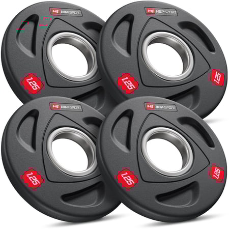 De Olympia halterschijven van Hop-Sport bieden alles wat je nodig hebt voor een comfortabele en stille training. Ze zijn gemaakt van massief gietijzer en voorzien van een duurzame roestvrijstalen ring. Het rubberen antislipoppervlak dempt geluiden en voorkomt verschuiven tijdens je workout.