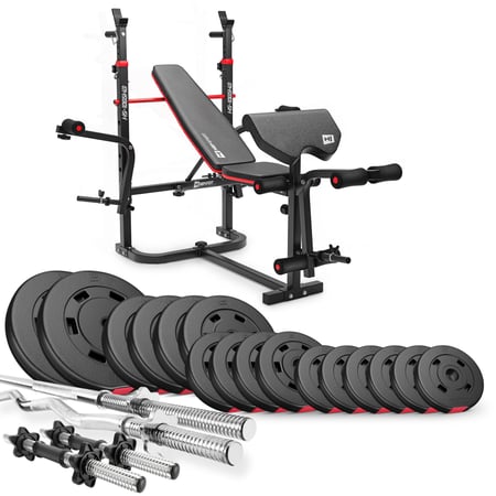 Ben je op zoek naar een geschikt apparaat waarmee je verschillende spieren kunt opbouwen en je training effectief en tijdbesparend thuis kunt uitvoeren? Met de halterbankset van Hop-Sport krijg je een volledig uitgeruste uitrusting voor thuis trainen. De halterbank staat centraal, waarmee je een verscheidenheid aan oefeningen kunt uitvoeren om meerdere spiergroepen van je lichaam met hetzelfde apparaat te trainen. Je zult een nieuw trainingsgevoel ervaren, omdat de extreme veelzijdigheid je zal verrassen.