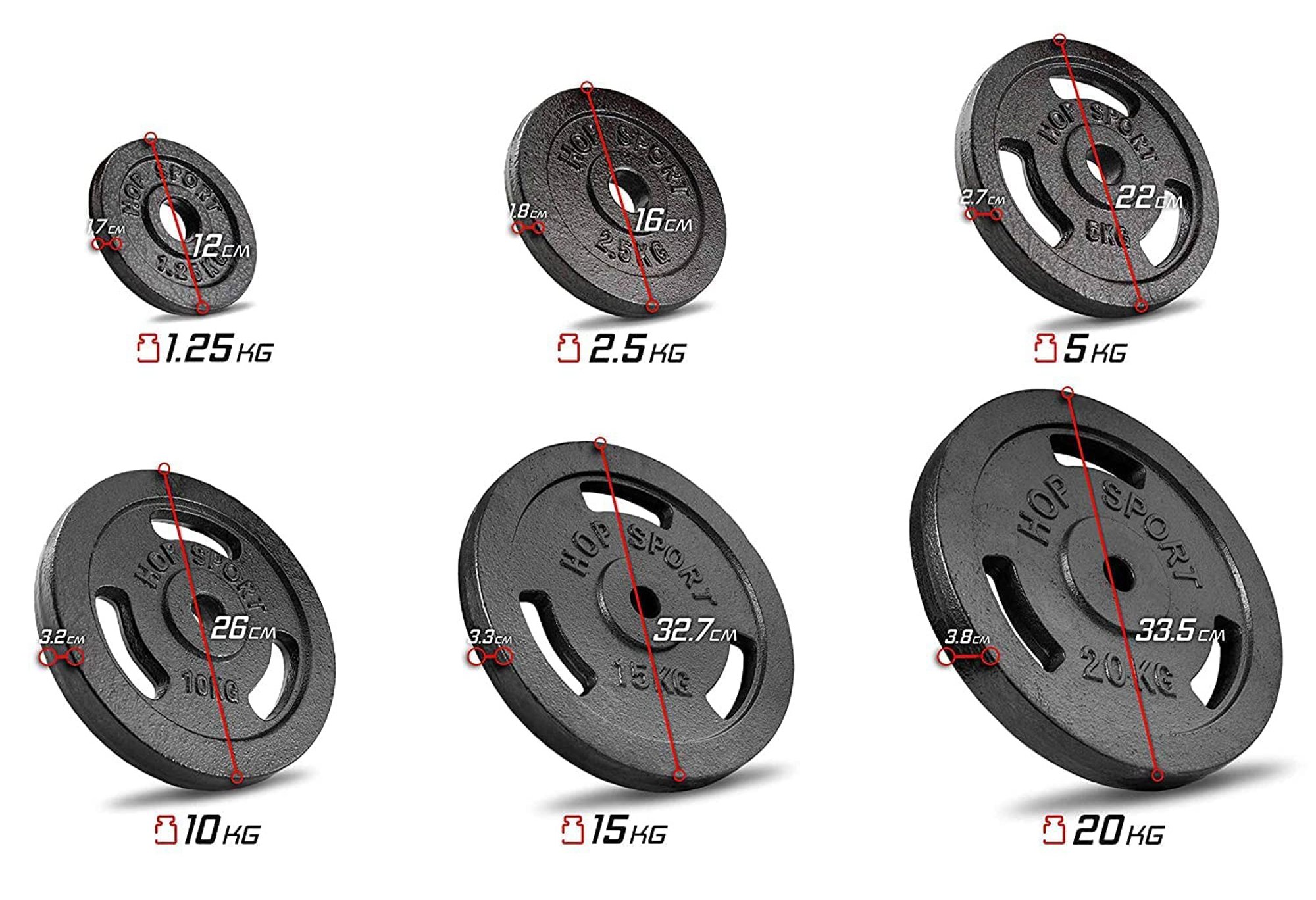 Gelakte oppervlakte De halterschijven van Hop-Sport zijn dankzij de gelakte oppervlakte beschermd tegen krassen en afschilferingen die tijdens het gebruik of de opslag kunnen ontstaan.