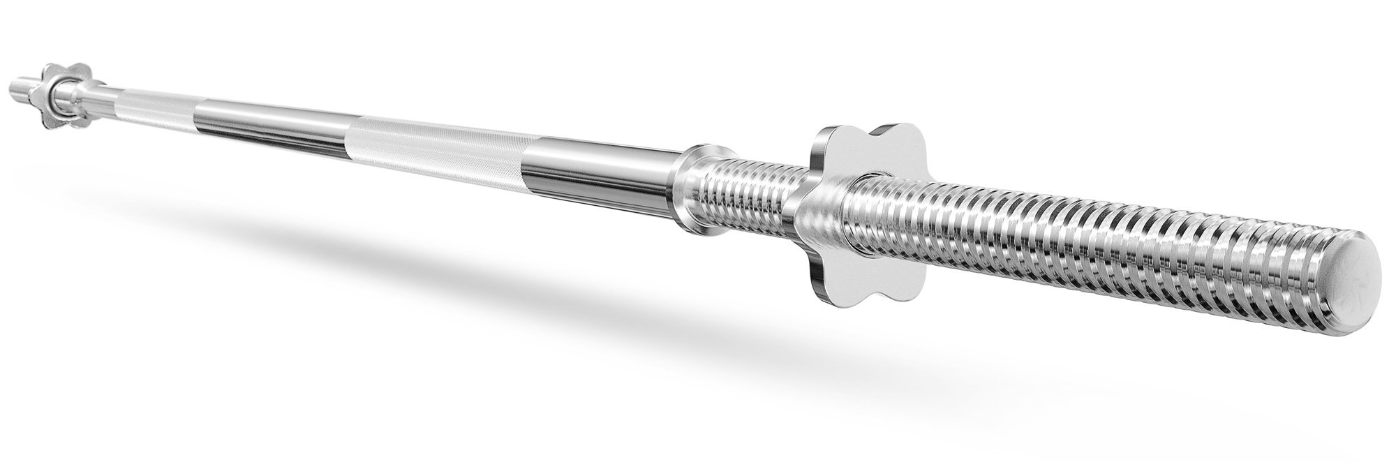 De halterstang heeft een oppervlak voorzien van schroefdraad, zodat het geplaatste gewicht zelfs bij intensieve belasting niet zwaait of verschuift. Door de aan het product bevestigde