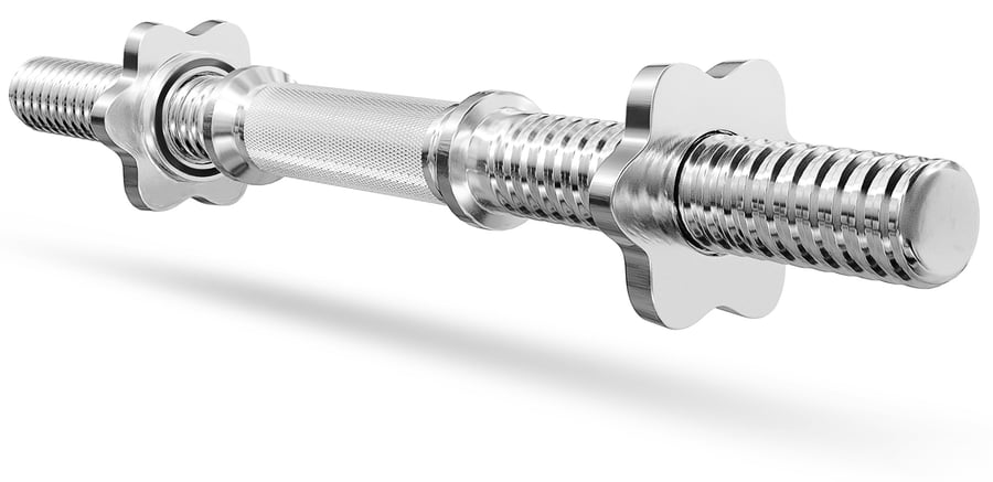 De stang is aan beide zijden voorzien van schroefdraad, zodat de gewichten snel en eenvoudig kunnen worden verwisseld (ze worden vastgezet met een draaivergrendeling).