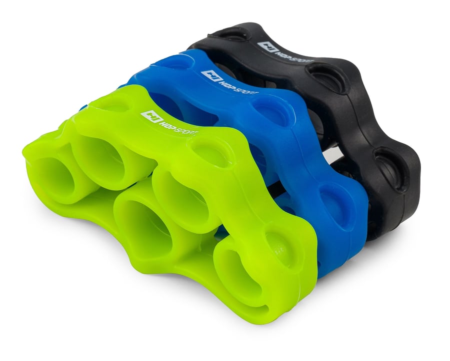 De handtrainer 3-delige set - maat S HS-S003FT van Hop-Sport helpt bij het trainen van de handspieren. De set bestaat uit drie elastieken van verschillende kleuren en met verschillende weerstanden. Het trainen met de handtrainers is een geweldige ondersteuning voor het revalidatieproces en het herstel na een blessure. Dankzij hun ergonomische vorm passen ze perfect in elke hand.