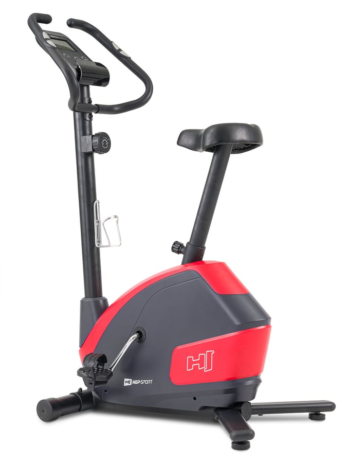 De hometrainer met magnetisch remsysteem HS-035H Leaf van Hop-Sport is uitgerust met polssensoren en een LCD-display. Ons fitnessapparaat helpt je om overtollige kilo's te verbranden, je figuur te vormen en je conditie te verbeteren. De hometrainer kenmerkt zich door een modern ontwerp en een stabiele constructie. Het 8 kg zware vliegwiel zorgt voor een soepele training. Het trainingscomfort wordt gegarandeerd door een in hoogte verstelbaar zadel en een goed leesbare, gebruiksvriendelijke computer waarmee je de belangrijkste trainingsparameters kunt volgen. Het maximale gebruikersgewicht voor dit apparaat is 135 kg.