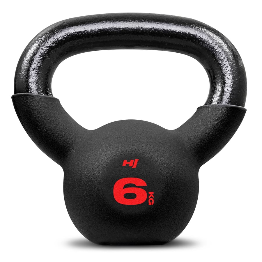 6 kg kettlebell van gietijzer met duurzame neopreen coating. Ideaal voor effectief full-body training en verkrijgbaar in meerdere gewichtvarianten.