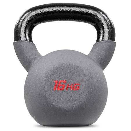 De Hop-Sport kettlebell van gietijzer is voorzien van een grijze neopreen coating. Dankzij deze hoogwaardige neopreen coating kan de kettlebell ook op gevoelige vloeren zoals laminaat worden geplaatst. Hierdoor worden ook geluiden gedempt. Een rubberen oppervlak voorkomt bovendien het wegglijden van de kettlebell.