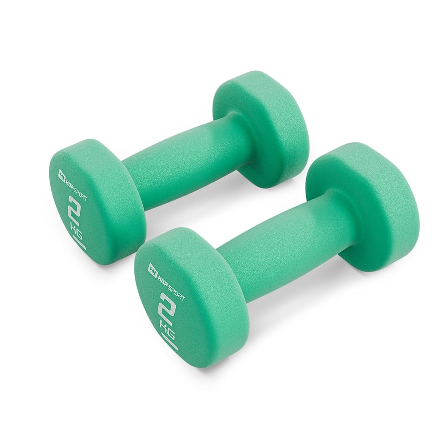 2x2kg gietijzeren halters met een laag antislip neopreen. Duurzame, stevig gemaakte halters - ideaal voor thuis trainen!