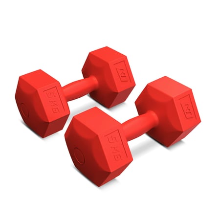 De halterset 2x5 kg is een eenvoudig maar doeltreffend fitness-accessoire voor thuis. Je versterkt er moeiteloos je arm- en rugspieren mee en gebruikt de halters ook voor aerobics, krachttraining of revalidatie. Dankzij de hexagonale vorm blijven ze stevig liggen zonder weg te rollen. De halters zijn gemaakt van hoogwaardig kunststof en voorzien van een duidelijke gewichtsaanduiding.