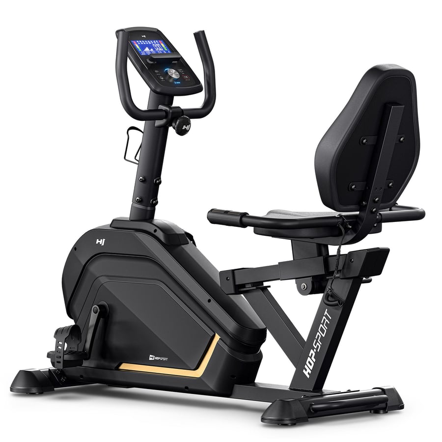 Ligfiets HS-120L Ravel met 32 magnetische weerstandsniveaus, 12 trainingsprogramma’s, Bluetooth- en app-bediening, LCD-display.