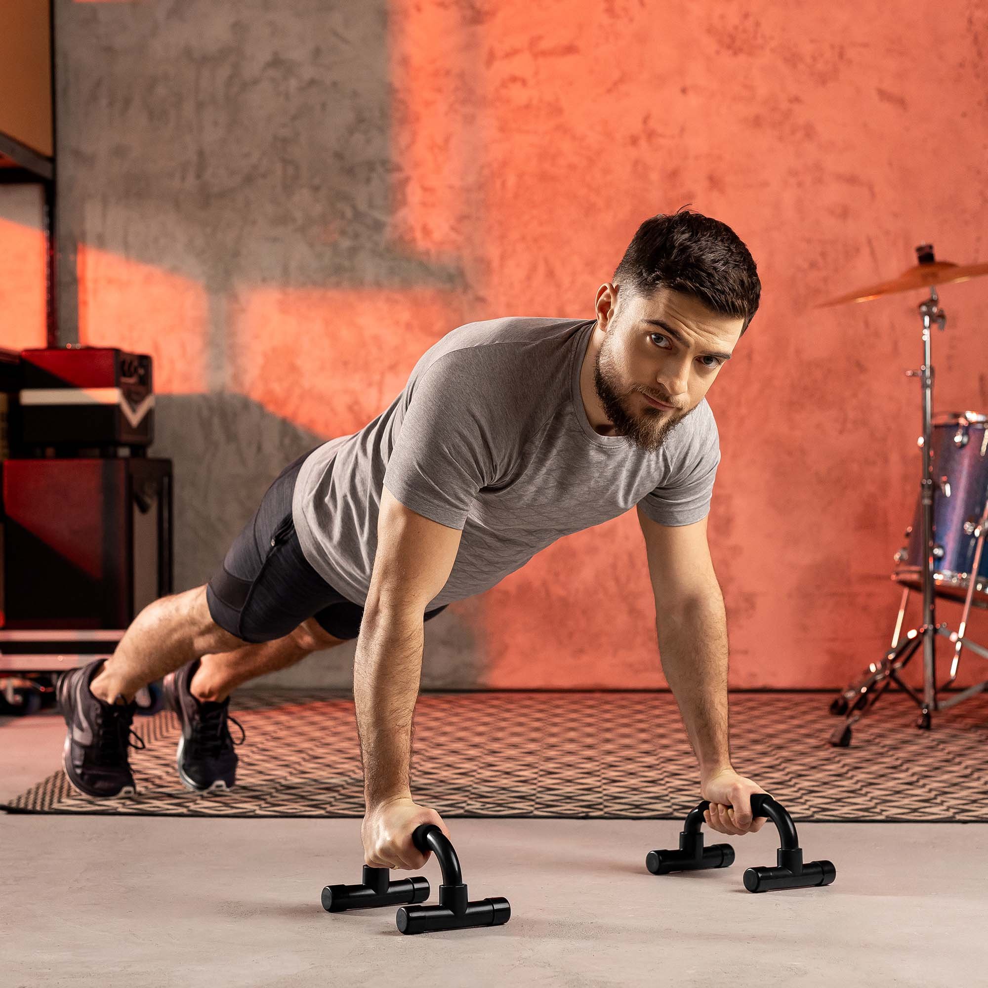 Oefeningen met de opdruksteunen brengen meer spieren naar voren en verhogen jouw fysieke uithoudingsvermogen. Het voordeel van dit model is een stevige kunststofconstructie met antislip onderlagen, die sterke grip biedt en het gewicht tijdens de training gelijkmatig verdeelt. Bovendien beschermt het zachte schuim dat het handgreepdeel bedekt, jouw handen tegen schuren.