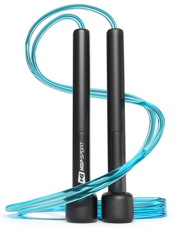 Het Hop-Sport springtouw is met de grootste zorg voor detail vervaardigd. Het is uitgerust met een duurzaam en flexibel kunststof touw. Je kunt er zowel aerobics als Crossfit mee doen.