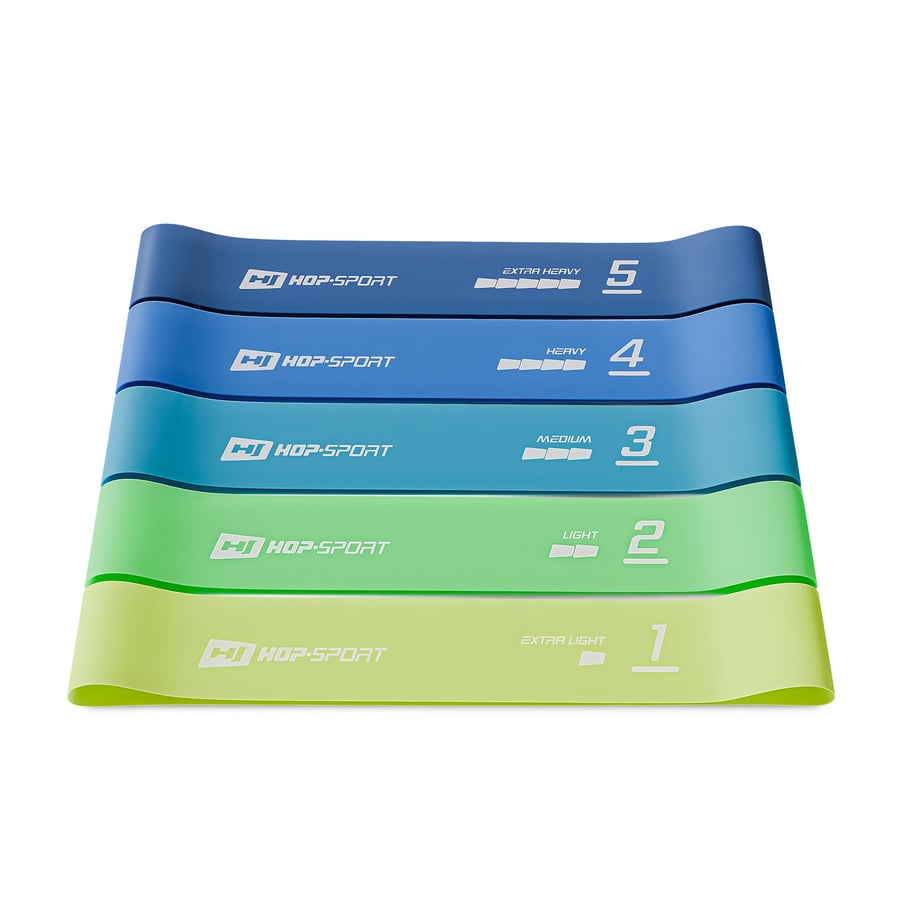 De Hop-Sport weerstandsbandenset is een ideaal hulpmiddel om je trainingen intensiever en effectiever te maken. De banden zijn geschikt voor uiteenlopende trainingsvormen, zoals aerobics en uithoudingsoefeningen, en kunnen zowel individueel als functioneel worden ingezet. Daarnaast zijn ze perfect om je spieren op te warmen voor krachttraining. De set bevat 5 banden met verschillende weerstandsniveaus, zodat je telkens nieuwe prikkels aan je spieren geeft en je workout nog veelzijdiger wordt.