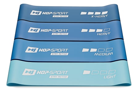 Fitnessbanden 600x75mm, Hop-Sport, duurzaam latex, hoge kwaliteit, verschillende weerstanden, gratis draagtasje, gratis levering, blauw