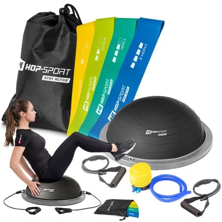 De in het set opgenomen Balancetrainer is een innovatief apparaat waarmee u uw lichaam effectief kunt versterken en voor de juiste lichaamshouding kunt zorgen. Wanneer u traint op het instabiele oppervlak dat het platform biedt, spreekt u veel meer spieren aan dan bij reguliere trainingen (inclusief diepe spieren). Om de moeilijkheidsgraad van de training te verhogen, kunt u de bijgevoegde fitnessbanden 500 X 50 mm HS-L550RL gebruiken. De banden worden specifiek gebruikt voor been-, bil-, arm- en rugoefeningen en kunnen gemakkelijk zware trainingsapparatuur vervangen. Bovendien kunt u met de accessoires uw flexibiliteit vergroten. Vanwege de kleine omvang is het set zeer gemakkelijk te vervoeren en past het perfect in elke sporttas.