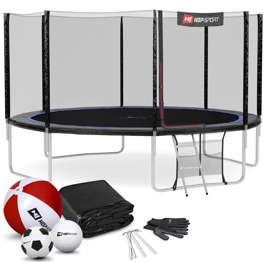 Tuintrampoline 14FT - 430 cm Buitennet van Hop Sport met INTERTEK-certificaat, hoogste kwaliteit incl. ladder, regenhoes, grondankers, schoenentas en montagehandschoenen, zwart/blauw