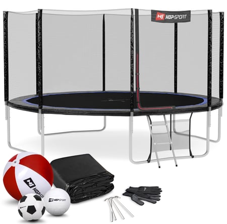 Het model van Hop-Sport kenmerkt zich door professionele afwerking en hoogwaardige kwaliteit. Om maximale veiligheid te garanderen, heeft de trampoline een volledig gegalvaniseerd stalen frame dat stabiel is tegen vervormingen en beschadigingen. Bij de levering ontvangt u ook een ladder, regenhoes, montagehandschoenen en grondankers. Als dank voor uw aankoop hebben we bij elke bestelling een strandbal, volleybal en voetbal als gratis cadeau toegevoegd, zodat uw kinderen nog meer plezier hebben! De trampoline heeft het Intertek/GS-certificaat.