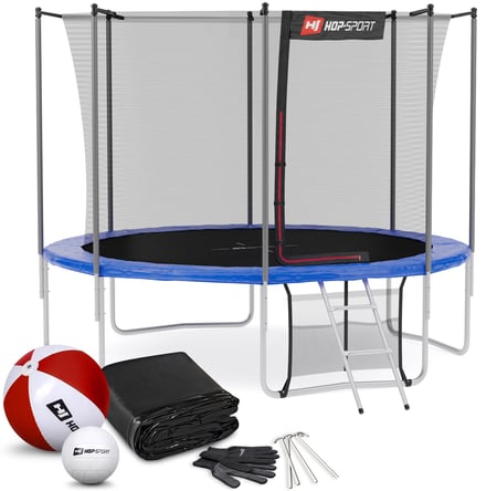 Het model van Hop-Sport kenmerkt zich door professionele afwerking en hoogwaardige kwaliteit. Om maximale veiligheid te garanderen, heeft de trampoline een volledig gegalvaniseerd stalen frame dat stabiel is tegen vervormingen en beschadigingen. Bij de levering ontvang je ook een ladder, regenhoes, montagehandschoenen en grondhaken. Als dank voor je aankoop hebben we bij elke bestelling een strandbal en volleybal als gratis cadeau toegevoegd, zodat je kinderen nog meer plezier hebben! De trampoline heeft het Intertek/GS-certificaat.
