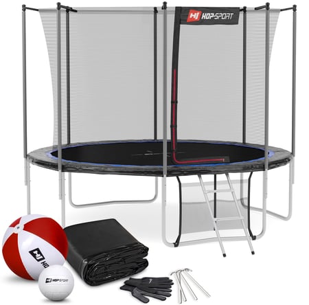 Het model van Hop-Sport onderscheidt zich door professionele afwerking en hoogwaardige kwaliteit. Om maximale veiligheid te garanderen, heeft de trampoline een volledig gegalvaniseerd stalen frame dat stabiel is tegen vervormingen en beschadigingen. Bij de levering ontvang je ook een ladder, regenhoes en grondhaken. Als dank voor je aankoop voegen we bij elke bestelling een strandbal en volleybal als gratis cadeau toe, zodat je kinderen nog meer plezier hebben! De trampoline heeft het Intertek/GS-certificaat.