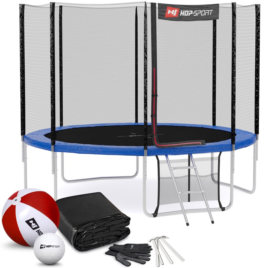 Tuintrampoline 10FT - 305 cm Buitennet van Hop Sport met INTERTEK-certificaat, hoogste kwaliteit inclusief ladder, regenhoes, grondankers, schoenentas en montagehandschoenen, blauw