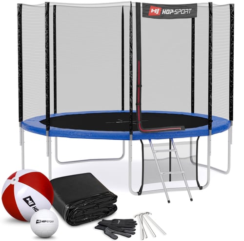 Het model van Hop-Sport onderscheidt zich door professionele afwerking en hoogwaardige kwaliteit. Om maximale veiligheid te garanderen, heeft de trampoline een volledig gegalvaniseerd stalen frame dat stabiel is tegen vervormingen en beschadigingen. Bij de levering ontvangt u ook een ladder, regenhoes, montagehandschoenen en grondhaken. Als dank voor uw aankoop hebben we bij elke bestelling een strandbal en volleybal als gratis geschenk toegevoegd, zodat uw kinderen nog meer plezier kunnen beleven! De trampoline heeft het Intertek/GS-certificaat.