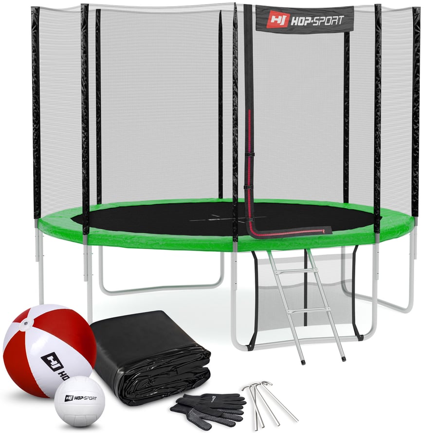 Tuintrampoline 10FT - 305 cm Buitennet van Hop Sport met INTERTEK-certificaat, hoogste kwaliteit incl. ladder, regenhoes, grondhaken, schoenentas en montagehandschoenen, groen
