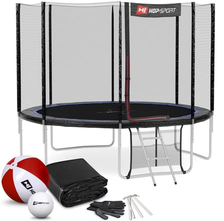 Het model van Hop-Sport kenmerkt zich door professionele afwerking en hoogwaardige kwaliteit. Om maximale veiligheid te garanderen, heeft de trampoline een volledig gegalvaniseerd stalen frame dat stabiel is tegen vervormingen en beschadigingen. Bij de levering ontvang je ook een ladder, regenhoes en grondhaken. Als dank voor je aankoop hebben we bij elke bestelling een strandbal en volleybal als gratis cadeau toegevoegd, zodat je kinderen nog meer plezier hebben! De trampoline heeft het Intertek/GS-certificaat.