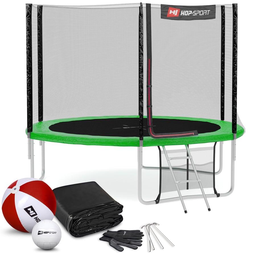 Het model van Hop-Sport onderscheidt zich door professionele afwerking en hoogwaardige kwaliteit. Om maximale veiligheid te garanderen, heeft de trampoline een volledig gegalvaniseerd stalen frame dat stabiel is tegen vervormingen en beschadigingen. Bij de levering ontvangt u ook een ladder, regenhoes, montagehandschoenen en grondhaken. Als dank voor uw aankoop hebben we bij elke bestelling een strandbal en volleybal als gratis geschenk toegevoegd, zodat uw kinderen nog meer plezier hebben! De trampoline heeft het Intertek/GS-certificaat.