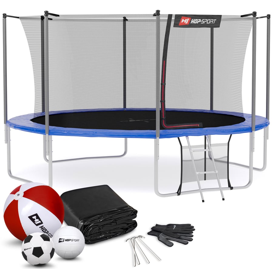 Tuintrampoline 14FT - 430 cm Binnennet van Hop Sport met INTERTEK-certificaat, hoogste kwaliteit inclusief ladder, regenhoes, grondankers, schoenentas en montagehandschoenen, blauw