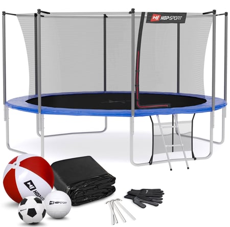 Het model van Hop-Sport kenmerkt zich door professionele afwerking en hoogwaardige kwaliteit. Om maximale veiligheid te garanderen, heeft de trampoline een volledig gegalvaniseerd stalen frame dat stabiel is tegen vervormingen en beschadigingen. Bij de levering ontvangt u ook een ladder, regenhoes, montagehandschoenen en grondankers. Als dank voor uw aankoop voegen we bij elke bestelling een strandbal, volleybal en voetbal als gratis cadeau toe, zodat uw kinderen nog meer plezier hebben! De trampoline heeft het Intertek/GS-certificaat.