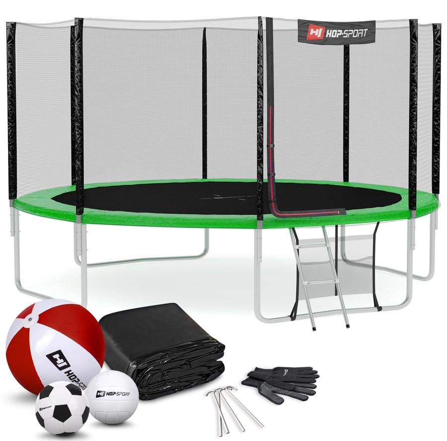 Tuintrampoline 14FT - 430 cm Buitennet van Hop Sport met INTERTEK-certificaat, hoogste kwaliteit inclusief ladder, regenhoes, grondankers, schoenenzak en montagehandschoenen, groen