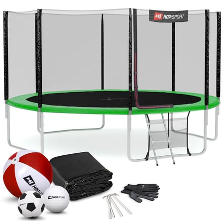 Het model van Hop-Sport kenmerkt zich door professionele afwerking en hoogwaardige kwaliteit. Voor maximale veiligheid heeft de trampoline een volledig gegalvaniseerd stalen frame, dat stabiel is tegen vervormingen en beschadigingen. Bij de levering ontvang je ook een ladder, regenhoes, montagehandschoenen en grondankers. Als dank voor je aankoop hebben we bij elke bestelling een strandbal, volleybal en voetbal als gratis cadeau toegevoegd, zodat je kinderen nog meer plezier hebben! De trampoline heeft het Intertek/GS-certificaat.