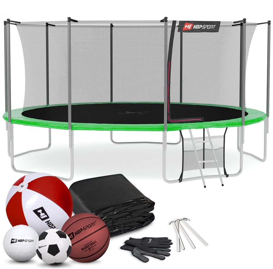 Tuintrampoline 16FT - 490 cm Binnennet van Hop Sport met INTERTEK-certificaat, hoogste kwaliteit incl. ladder, regenhoes, grondhaken, schoenentas en montagehandschoenen, groen