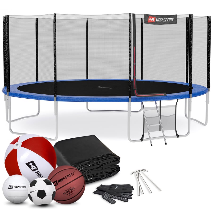 Tuintrampoline 16FT - 490 cm Buitennet van Hop Sport met INTERTEK-certificaat, hoogste kwaliteit incl. ladder, regenhoes, grondankers, schoenentas en montagehandschoenen, blauw
