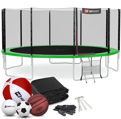 Het model van Hop-Sport kenmerkt zich door professionele afwerking en hoogwaardige kwaliteit. Om maximale veiligheid te garanderen, heeft de trampoline een volledig gegalvaniseerd stalen frame dat stabiel is tegen vervormingen en beschadigingen. Bij de levering ontvang je ook een ladder, regenhoes en grondankers. Als dank voor je aankoop voegen we bij elke bestelling een basketbal, strandbal, volleybal en voetbal als gratis cadeau toe, zodat je kinderen nog meer plezier kunnen beleven! De trampoline heeft het Intertek/GS-certificaat.