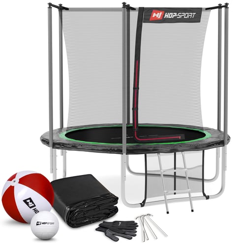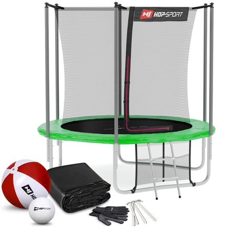 Het model van Hop-Sport kenmerkt zich door professionele afwerking en hoogwaardige kwaliteit. Om maximale veiligheid te garanderen, heeft de trampoline een volledig gegalvaniseerd stalen frame dat stabiel is tegen vervormingen en beschadigingen. Bij de levering ontvangt u ook een ladder, regenhoes en grondankers. Als dank voor uw aankoop hebben we bij elke bestelling een strandbal en volleybal als gratis cadeau toegevoegd, zodat uw kinderen nog meer plezier hebben! De trampoline heeft het Intertek/GS-certificaat.